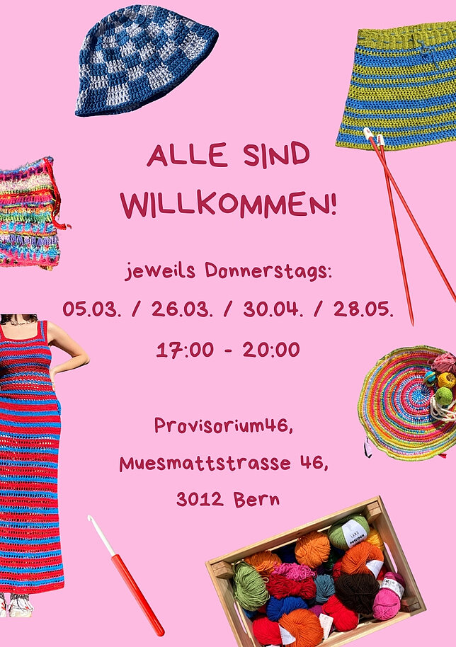 Komm jeweils Donnerstags zum Häkeln und Stricken ins Provisorium46. Alle sind willkommen!